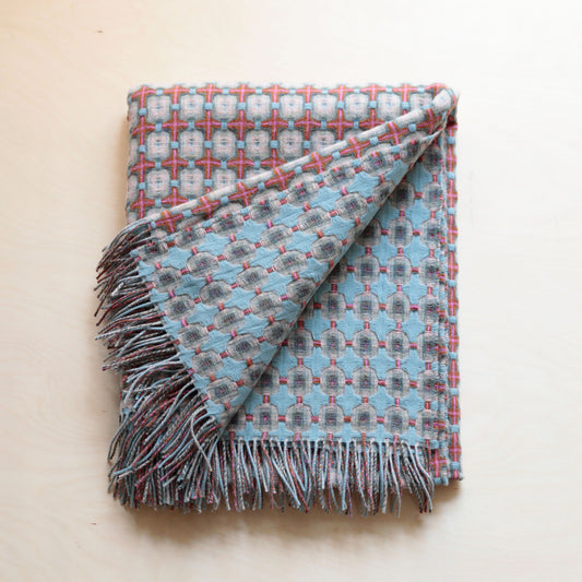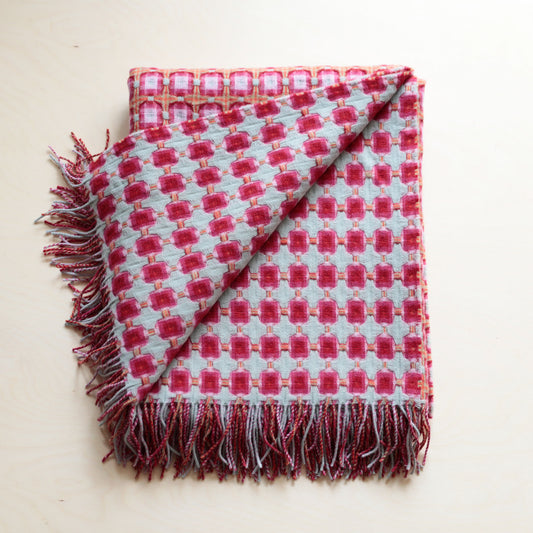 Green and Coral Basket Weave Throw by Paulette Rollo