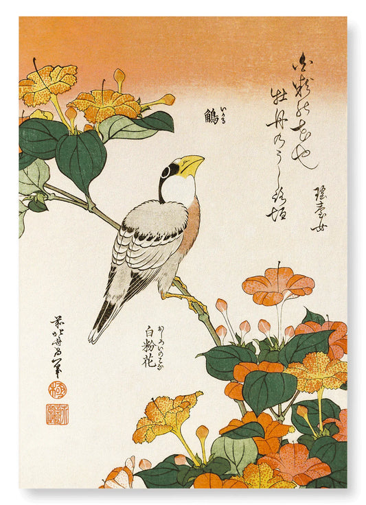 Japanese Grosbeak with Marvel-of-Peru Flowers (C.1834) | Size A4