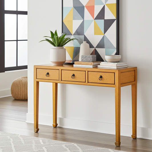 Yellow Chinese Desk with Three Drawers from ShanDong