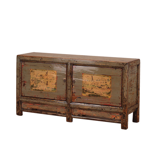Vintage Chinese Two-Door Sideboard with Faded painting