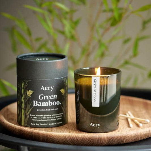Green Bamboo Scented Candle - Cypress Patchouli and Orange