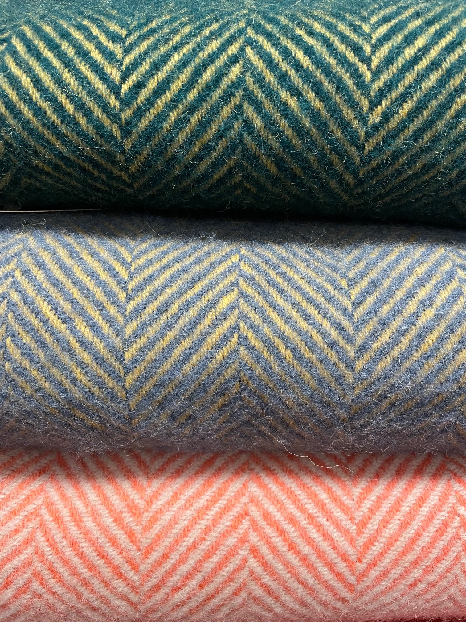 This contrasting herringbone weave is made by UK brand Tweedmill and is woven using 100% Pure New Wool. The weave shows the same on both sides of the blanket. This version has the striking colour combination of a Flamingo pink with Pearl white, fringed with the pink colour.