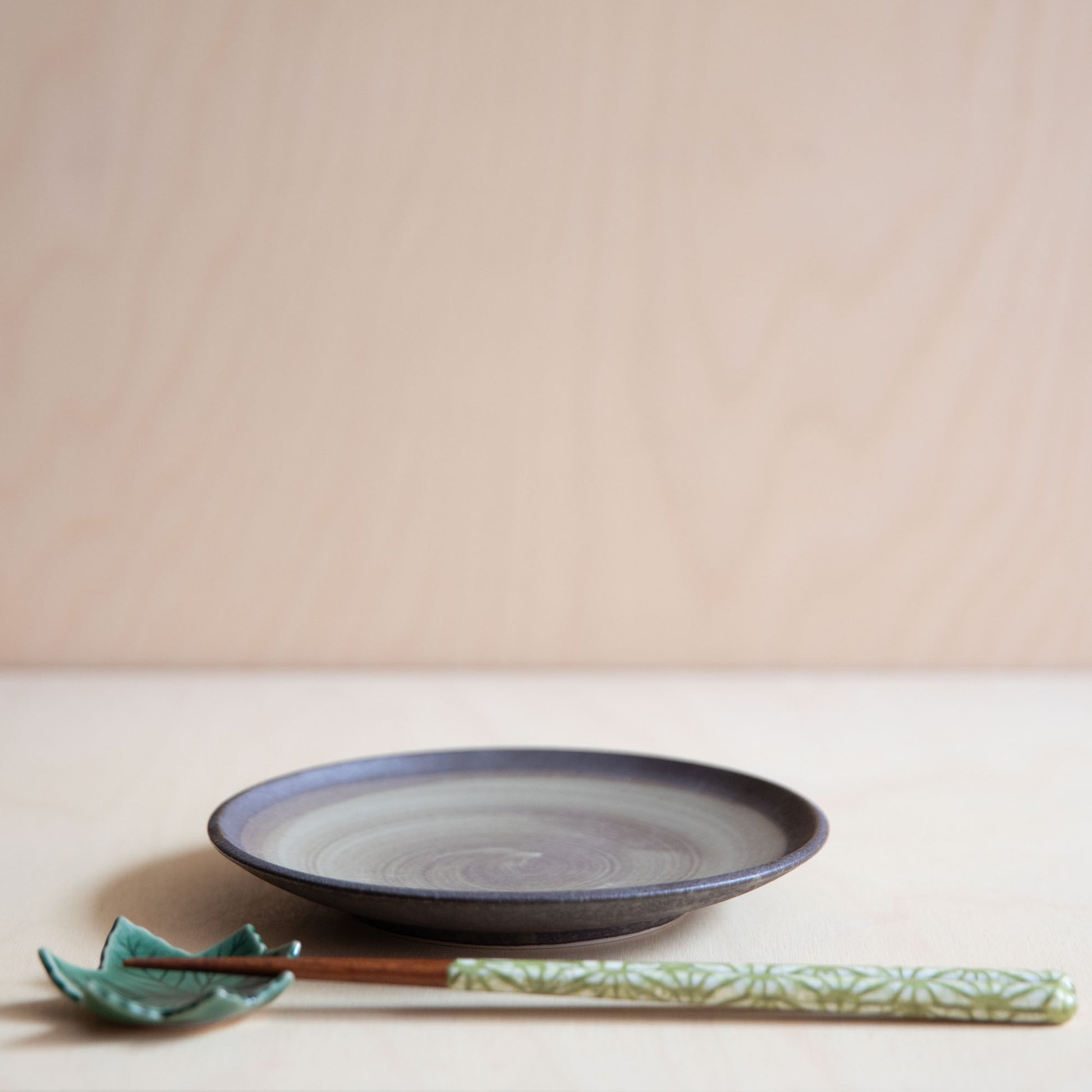 Japanese stoneware plate with soft browns and cream colours blending together. These plates are 90% glazed with a matte unglazed rim drawing the users eye to the centre of the plate.