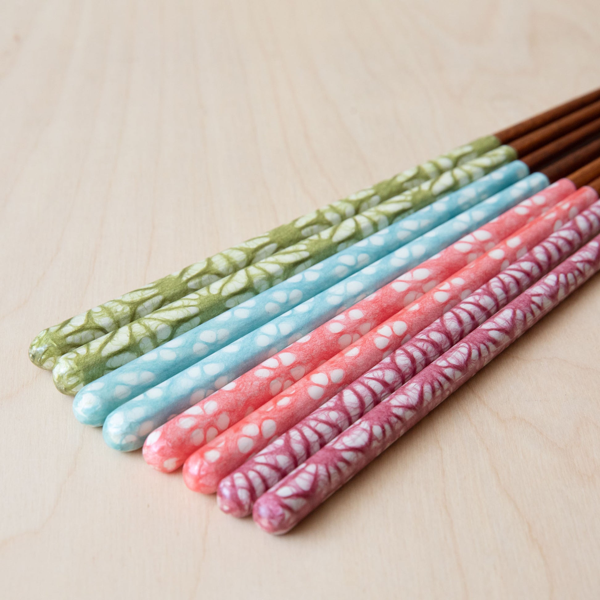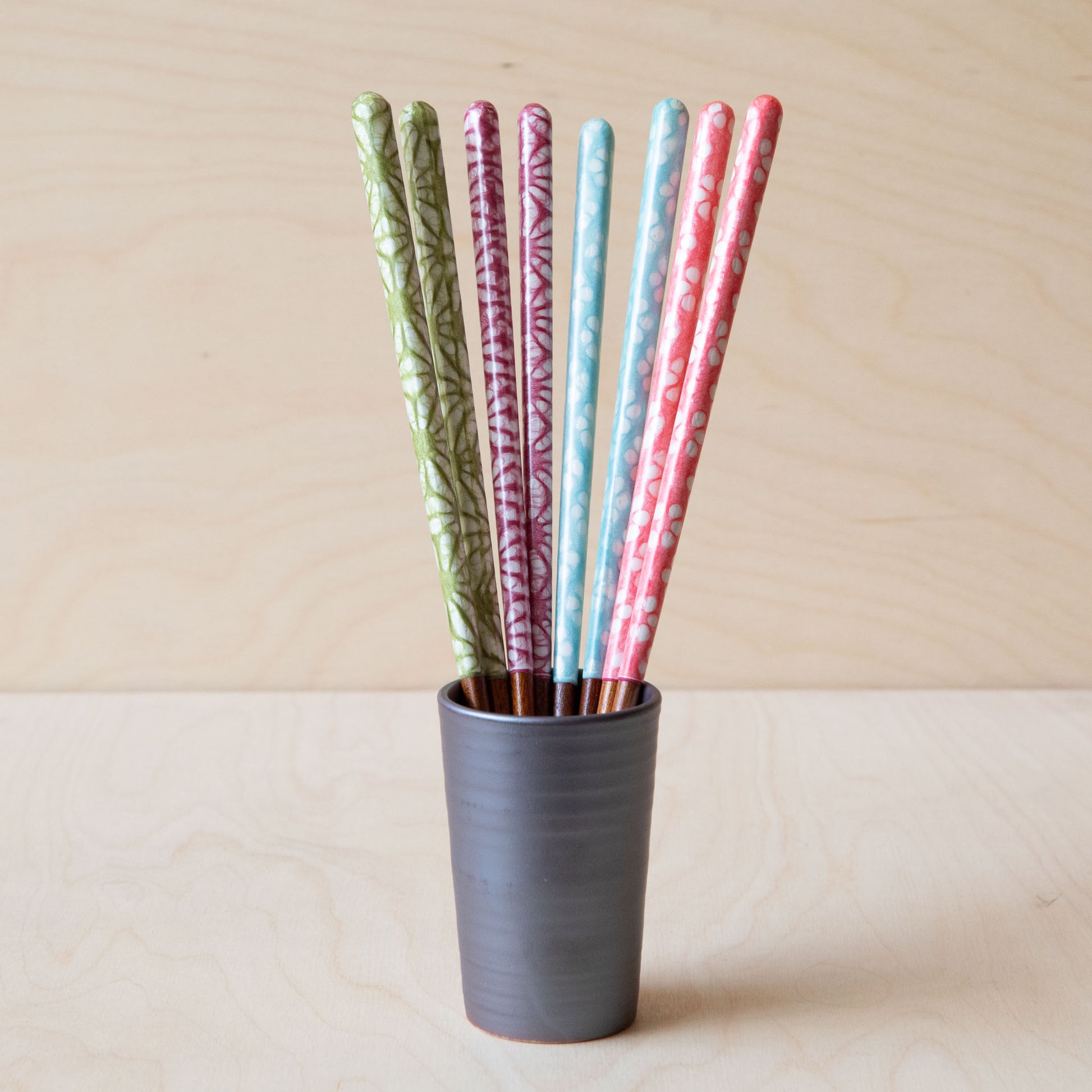 Beautiful chopsticks with washi paper patterns in 4 different colours.